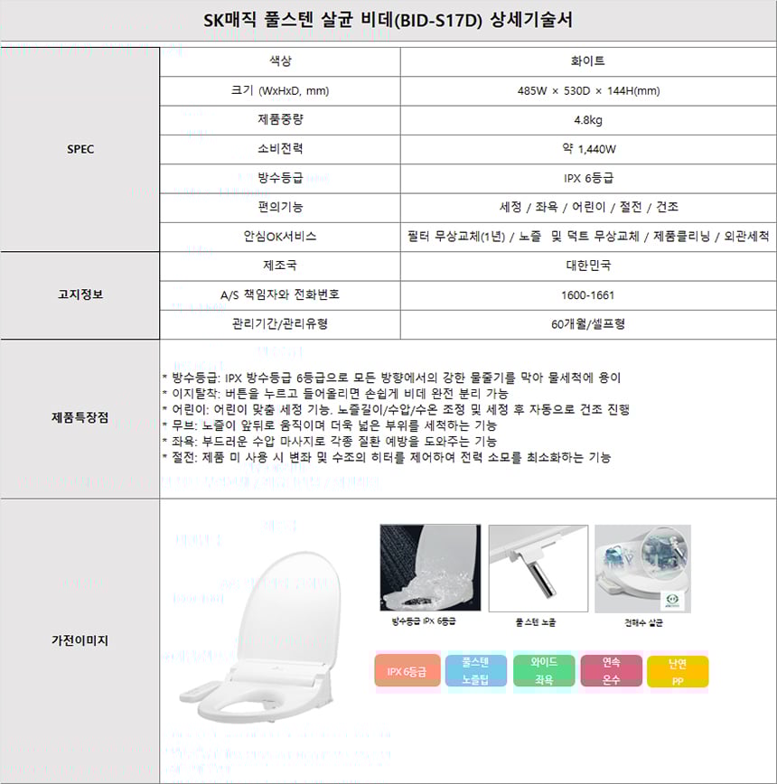 WPU-IAC425SNW+BID-S17D 소노아임레디 [SK매직] 원코크 플러스 얼음 냉온정수기 화이트 + 풀스텐 살균 비데 화이트 제품분류 결합상품 구좌 4구좌 AS기간 1년 최저 렌탈가 월 66,000 (렌탈가) 제휴카드 할인가 월 (렌탈가) 1-200회 60개월 셀프관리 60개월 셀프관리 할인 제휴카드 보기 렌탈신청 장바구니
